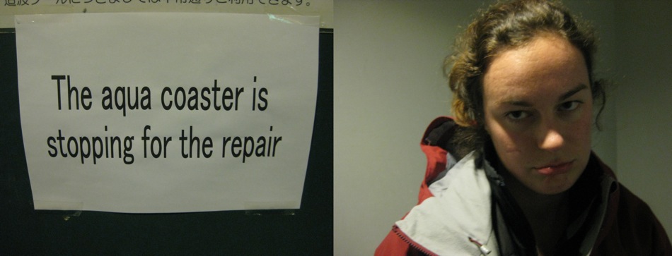 The two large resort hotels suffer from a case of schizophrenia. We would walk though a classy lobby and dining room, only to pass through a hallway and be confronted by an inexplicable mechanical dog band, carnival ride, and a fountain/lightshow timed to gratuitous music. One night we went to the pool, which seemed suspiciously shallow until, minutes later, artificial waves began crashing from one end to the other, battering small children on their way. The water slide, which we were told swings outside the hotel into the cold winter air, was, sadly, closed for repair.