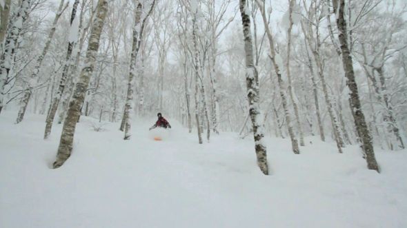 It all piled up to about a foot of fresh snow every 24 hours, filling in all the tracks from the day before and creating yet another morning of snow removal for the residents of Rusutsu. Needless to say, the skiing was phenomenal. The snow and varied terrain more than made up for a lack of sustained vertical, and perfect birch glades, steep ridges and gullies, and countless pillow lines definitely kept us entertained. To top it off, lift lines were nonexistent, and there was no need for the usual frenzy for first tracks, since you could find them all day. If you’re not jealous yet, here are some framegrabs from video we’ve shot: