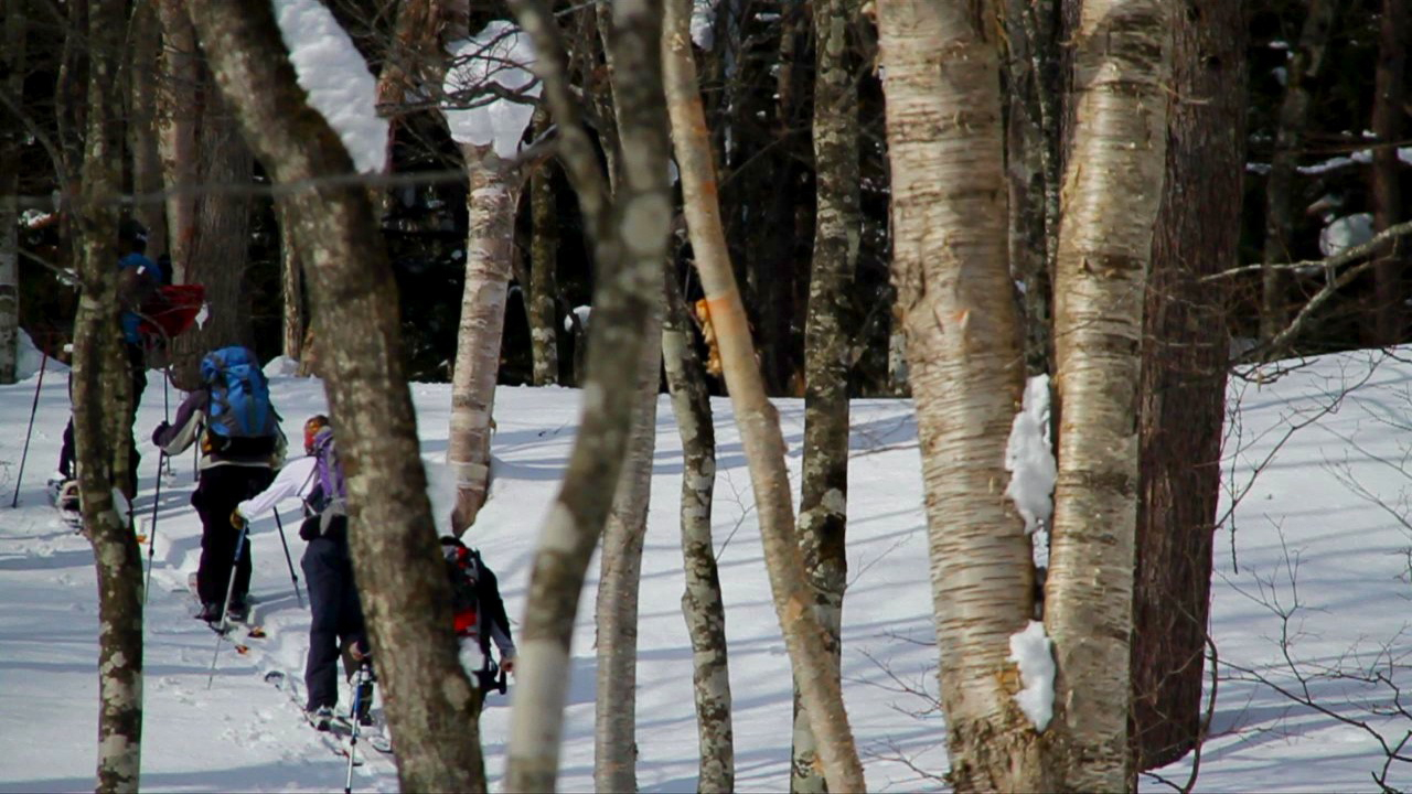 Away from the crowds of resort skiers, the mountains become a totally different place. The recorded lifts announcements and the sounds of skis crunching on groomers fade, and animal tracks loop in every direction. A day hardly passed without seeing a kamoshika, as they picked their way across ridges and watched us sedately.