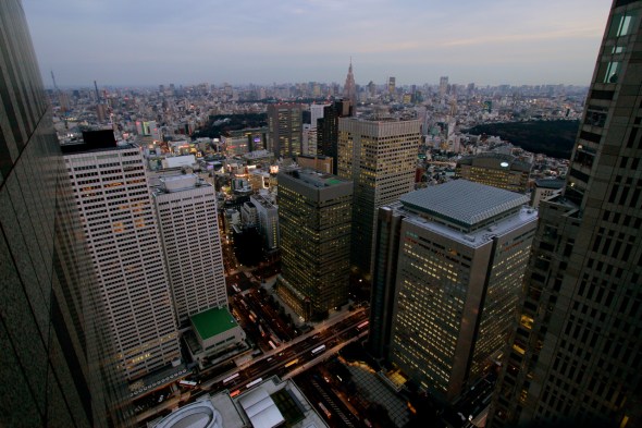 Wandering the streets, the buildings don’t seem excessively huge, the views aren’t especially impressive—in fact, the only remarkable thing seems to be how many people are riding the subways. But from the 45th floor of the Tokyo Metropolitan Government Building, it’s a different story. Buildings, large and small, stretch off in every direction, disappearing into the horizon. Literally. You can’t see the end of them. We could go on and on trying to describe it, but…it’s big. Very big.
