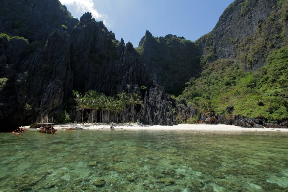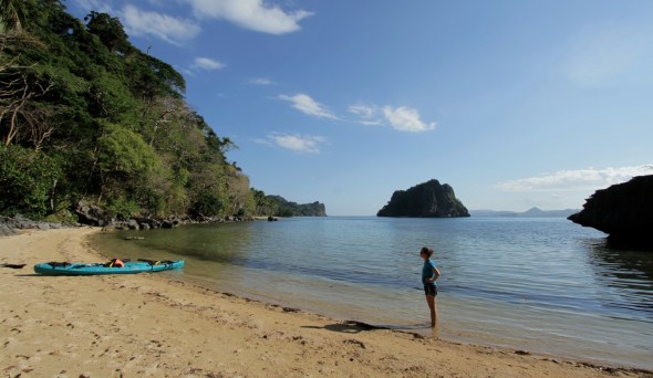 Three French women joined us on the nine-mile paddle out to Matinloc Island, with stops at some of the most alluring beaches we’ve ever seen. Coves and lagoons opened up to reveal small beaches obscured from view by craggy cliffs.