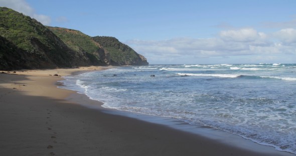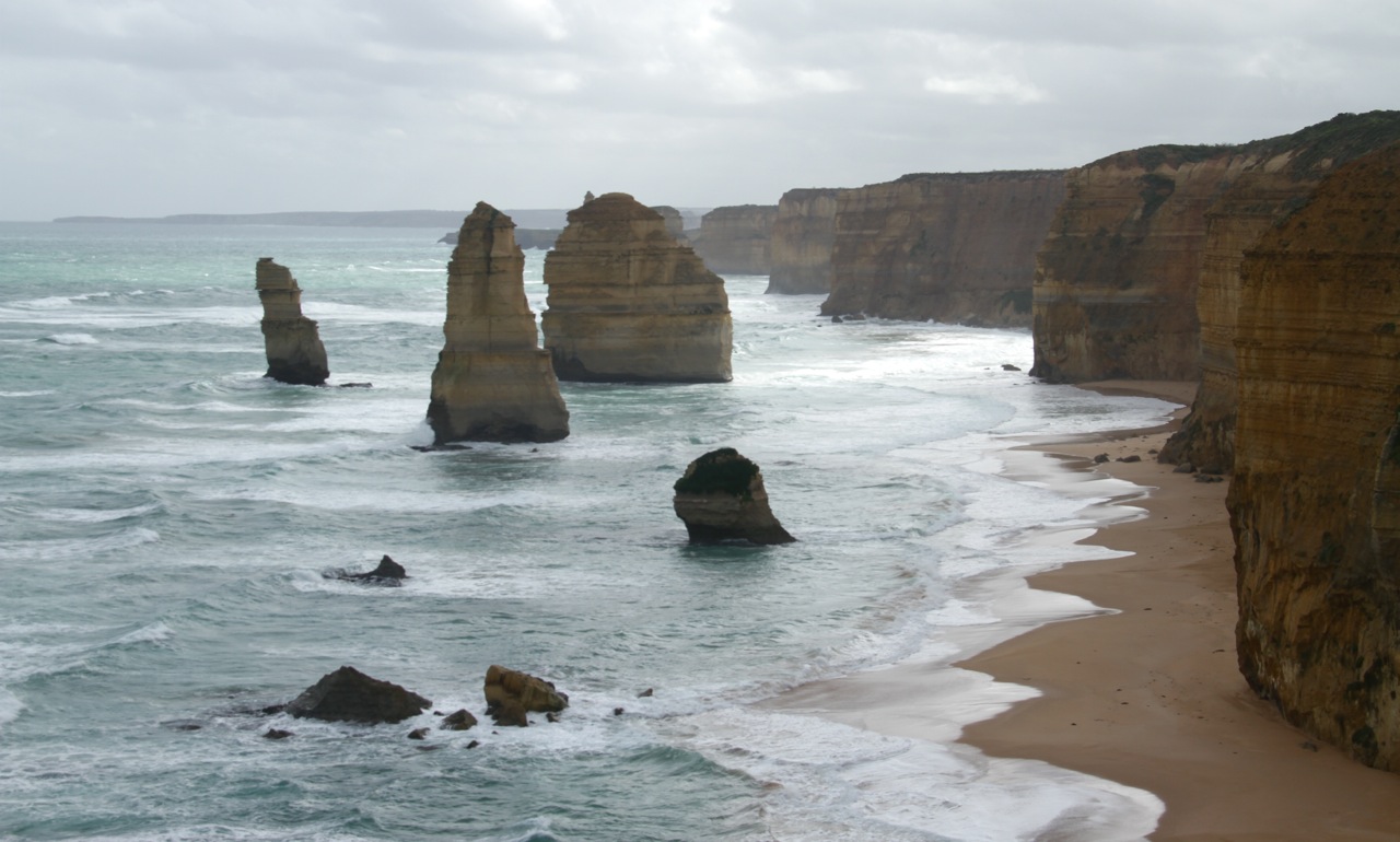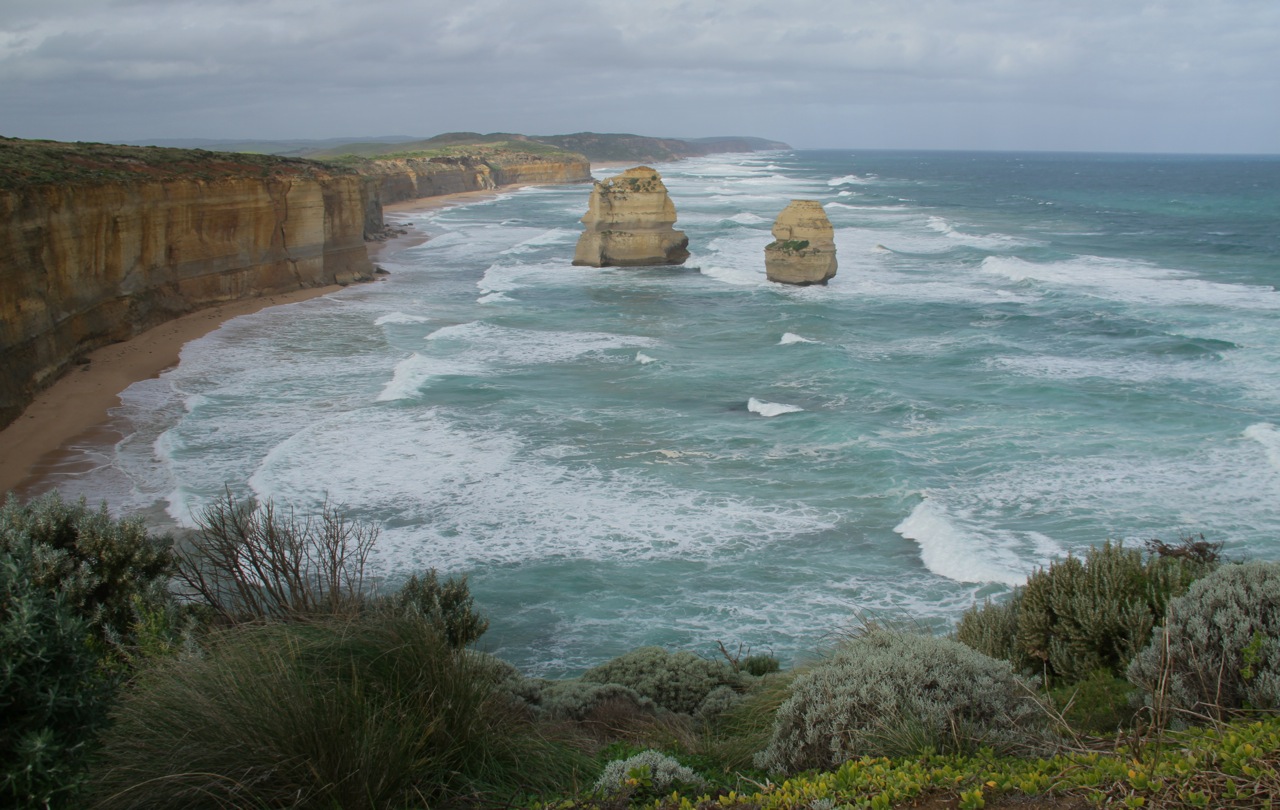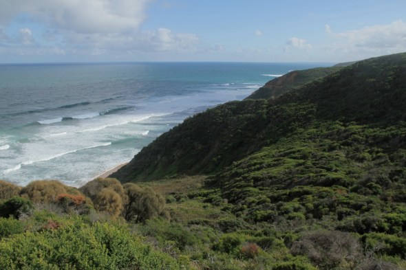 The Great Ocean Road in Victoria, Australia winds along nearly 250 kilometers of spectacular coastline, looking remarkably similar to California’s Big Sur. It’s an easy drive from Melbourne, and we elected to rent a car and get out of the city for a few days while our newly purchased car was tuned up. From the unfamiliar left side of the road, we watched the ocean crash against yellow cliffs and long, cold beaches.
