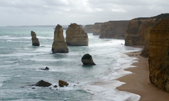 By far the most popular section of the road is the Twelve Apostles, a group of sandstone pillars standing in the spraying surf. They were beautiful, the yellow and orange sandstone contrasting with the deep blue waves crashing around them. But, despite the cold weather, the walkways were full of people jostling for the best photo spots, and we preferred some of the more isolated beaches and viewpoints.