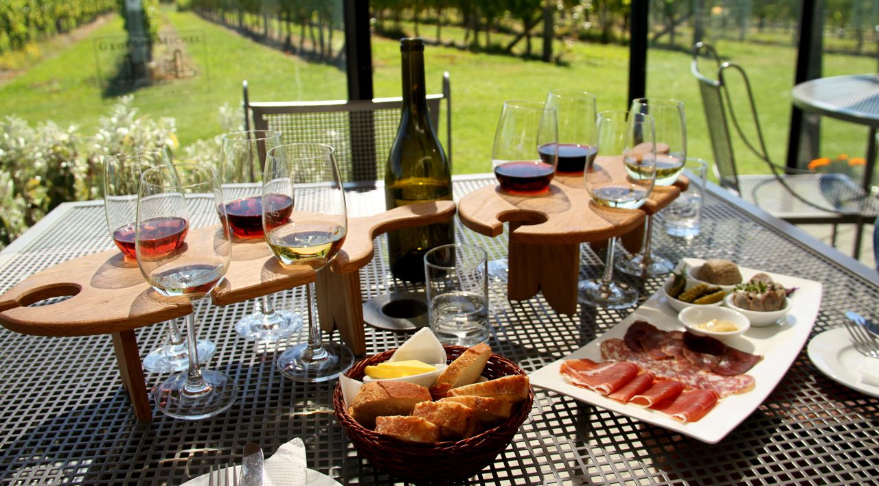 Another day, another ride, this time to the gates of Georges Michel, a French influenced winery. The wine here was delicious, some boasting smells and flavors that make you wonder if they didn’t crush fresh berries right into the bottle. We opted not to resist a platter of charcuterie and two flights of wine to match.