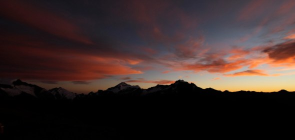 Another alpine morning, another stunning sunrise. The Rob Roy Glacier glows in morning light before the clouds roll in for good. We descend to the car and hole up in Wanaka while rain pours down during the night. A perfectly timed trip.
