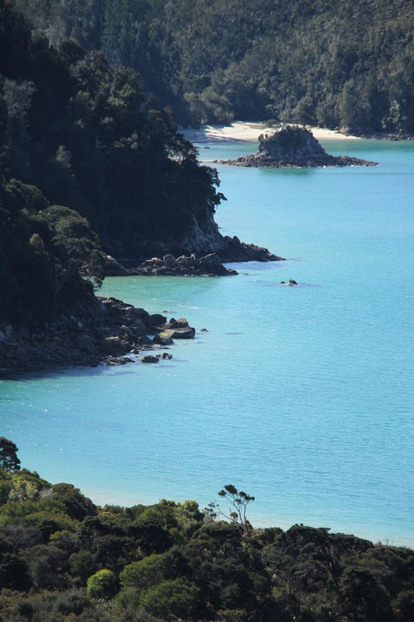 It only took a few minutes to reach our first of many spectacular views. The water is a tropical aquamarine, perfectly complemented by the cool, green forest spilling down to the waters edge. Golden beaches and rocky islets dot the coastline, all perfectly framed at thoughtfully cut viewpoints.